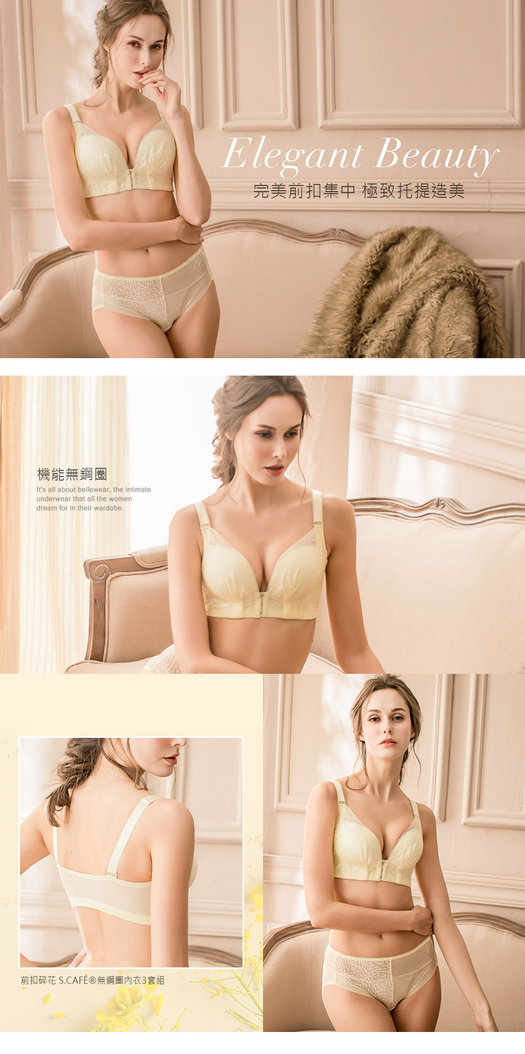 【77涵團購】貝兒薇內衣 無鋼圈集中前扣碎花 透氣S.Café®胸罩(3套組)